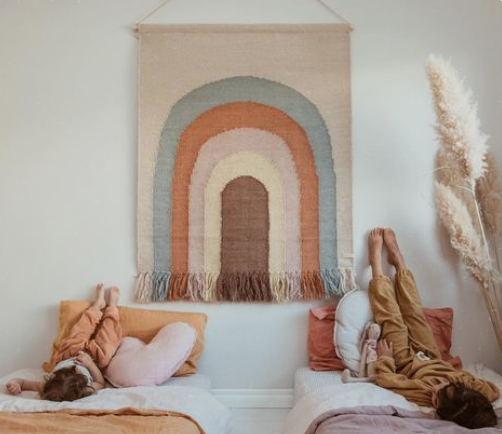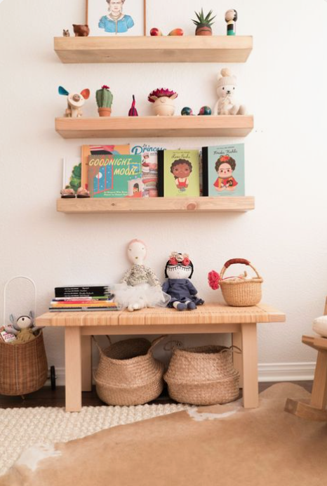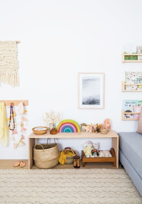 I like to bring in character, energy and warmth with rugs, pillows, art and lighting. Kids favorite colors, animals, superheroes, let's face it, personalities can change over night so you don't want to invest too heavily in those variable accent pieces, but you also want to indulge their imaginations. Curating pretty bedding and pillows, layering rugs, stringing garland and twinkly lights, creating reading nooks and plenty of pretty practical storage options won't break the bank and will give your kids the creative inspiration they need in their own little oasis. On tip I do stand behind is, from the beginning, stay away from cheap, plastic, ugly toys. If they never had them, they wont know they exist. Buy your children untreated wooden toys and figurines. They're vintagey, indestructible and look just as cute styled on a shelf as they do thrown on the floor, which is inevitably be where they end up.