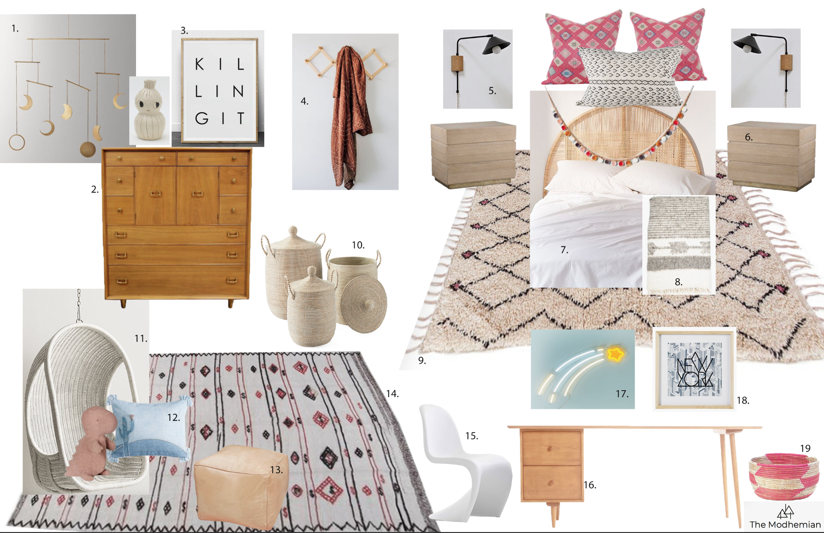 9. Beni Ourain- A little Moroccan shag with a slight hint of pink and a tassel makes for the perfect landing pad for that gorgeous bohemian bed. One of kind makes it extra special and etsy is my go to for extra special accouterment.